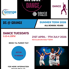 School club for Grange students only. Tuesdays 3.15-4.15pm